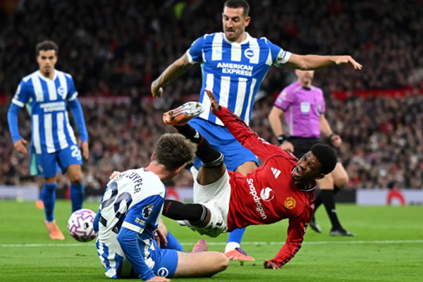 Amad Diallo đã bị từ chối một quả phạt đền gây tranh cãi trong trận gặp Brighton, sau khi VAR can thiệp. Tình huống xảy ra khi Amad va chạm với Maxim De Cuyper trong vòng cấm. Ban đầu, có vẻ như hậu vệ của Brighton đã phạm lỗi, nhưng các góc quay chậm cho thấy De Cuyper dường như đã chạm nhẹ vào bóng trước tiên. Trọng tài Anthony Taylor lập tức phẩy tay từ chối khiếu nại, cho rằng việc De Cuyper chạm bóng trước đã cứu anh khỏi việc phạm lỗi dẫn đến phạt đền.