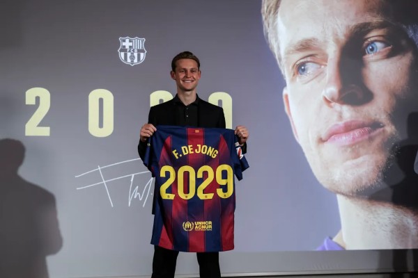 De Jong đặt bút ký vào bản hợp đồng mới kéo dài đến hè 2029, khép lại mọi đồn đoán về tương lai. Buổi lễ ký kết diễn ra tại trụ sở CLB, có sự góp mặt của Chủ tịch Joan Laporta, Phó chủ tịch Rafael Yuste, Giám đốc Thể thao Deco, cùng các thành viên trong ban thể thao và gia đình thân thiết của De Jong.