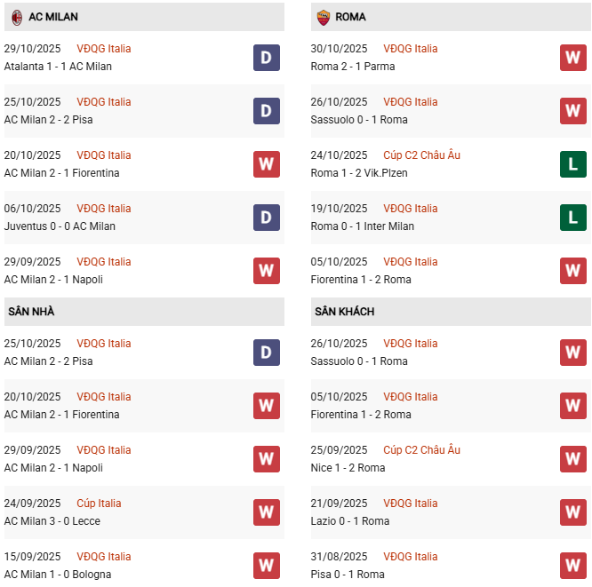 - Trên sân nhà, AC Milan thắng 5, thua 2 trước AS Roma.