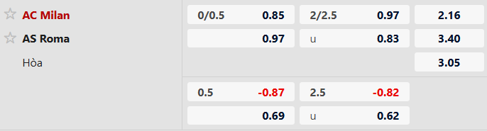 Thông tin tỷ lệ kèo bóng đá AC Milan vs AS Roma: