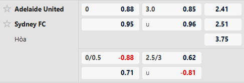 Thông tin tỷ lệ kèo Adelaide United vs Sydney FC: