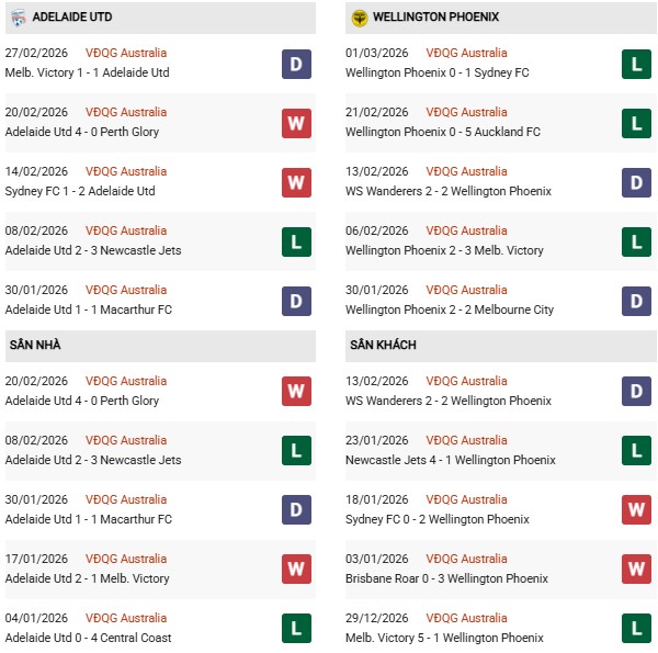 Adelaide United thắng 2, hòa 1 ở 3 trận đấu gần đây. Bên cạnh đó, Adelaide United bất bại trong 6 lần tiếp đón Wellington Phoenix trên sân nhà gần đây, trong đó họ giành 6 chiến thắng. Mặt khác, Wellington Phoenix không thắng 6 trận gần đây, trong đó thua 4. Họ đang xếp đội sổ tại giải VĐQG Australia.