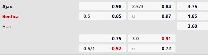 Thông tin tỷ lệ bóng đá Ajax vs Benfica: