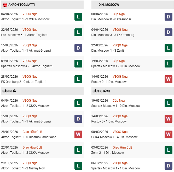 Xét tương quan lực lượng, Dynamo Moscow vẫn vượt trội hơn về chiều sâu đội hình lẫn chất lượng cá nhân. Tuy nhiên, động lực chiến đấu của Akron là yếu tố không thể xem nhẹ khi đội chủ nhà đang rất cần điểm để tránh rơi xuống khu vực nguy hiểm.