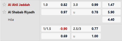 Thông tin tỷ lệ kèo Al Ahli vs Al Shabab: