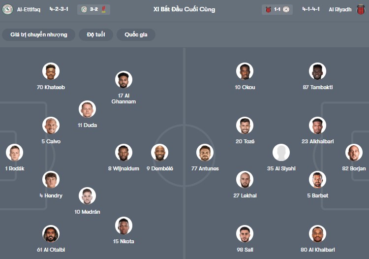 Đội hình dự kiến Al Ettifaq vs Al Riyadh: