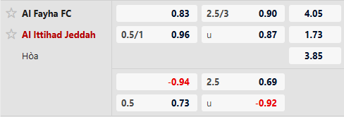 Thông tin tỷ lệ bóng đá Al Fayha vs Al Ittihad: