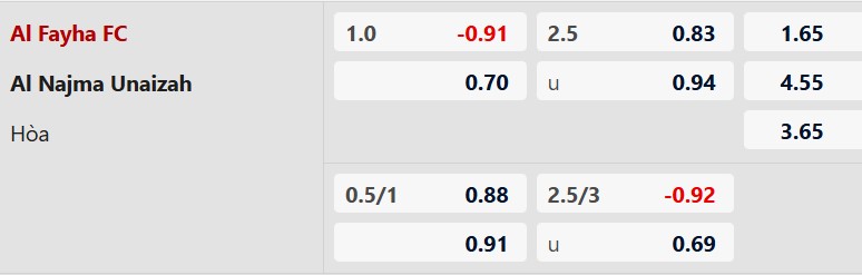 Thông tin tỷ lệ kèo Al Feiha vs Al Najma: