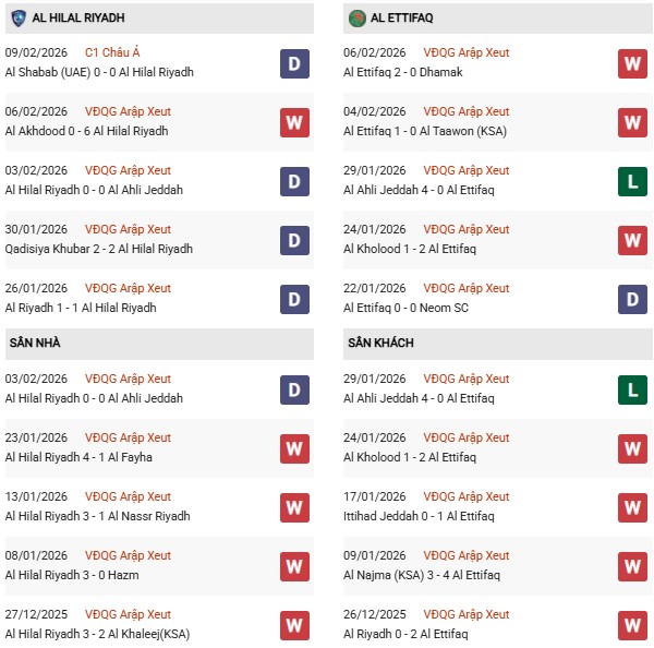 - Trên sân nhà, Al Hilal thắng 8, hòa 2 trước Al Ettifaq.