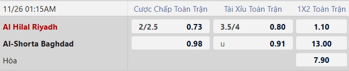 Soi kèo tài xỉu Al Hilal vs Al Shorta: