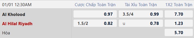 Thông tin tỷ lệ kèo bóng đá Al Kholood vs Al Hilal: