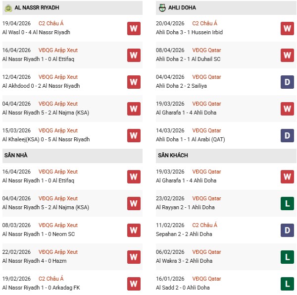 Thống kê phong độ Al-Nassr vs Ahli Doha: