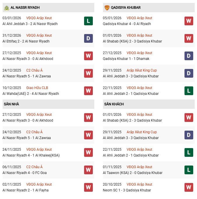 Thống kê phong độ Al Nassr vs Al Qadsiah:
