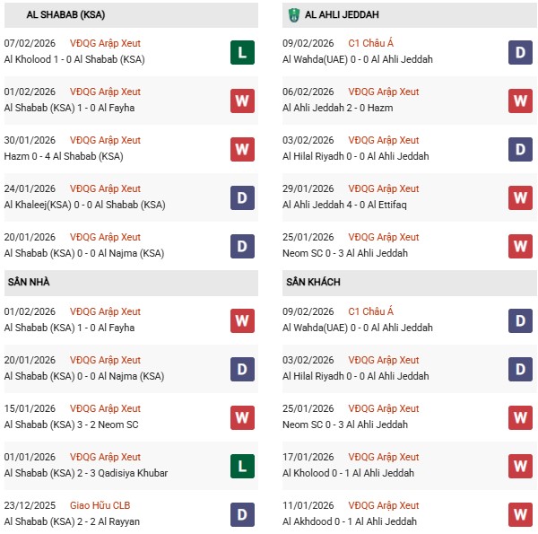 - Al Shabab thắng 4, hòa 4, thua 2 trong 10 trận gặp Al Ahli gần đây.