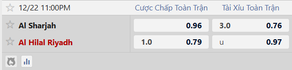 Thông tin kèo bóng đá Al Sharjah vs Al Hilal:
