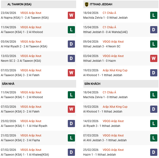- Trên sân nhà, Al Taawoun thắng 3, thua 5 trước Al Ittihad.