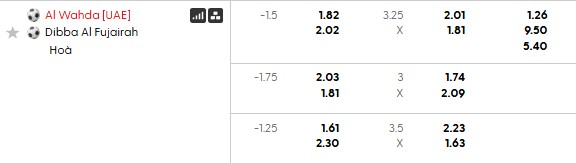 Thông tin tỷ lệ cược Al Wahda vs Al Fujairah: