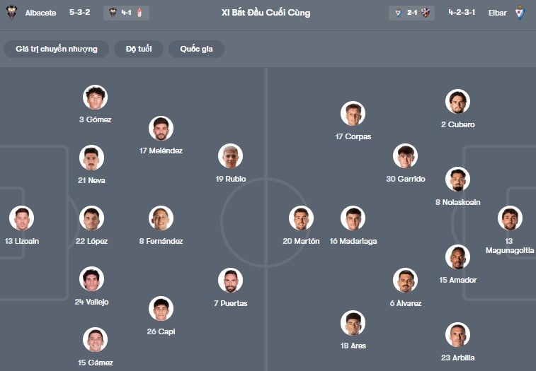 Với mục tiêu lọt vào Top 6 để đá play-off thăng hạng, Eibar chắc chắn sẽ hành quân đến sân của Albacete với quyết tâm cao nhất. Trong khi đó, chủ nhà Albacete dường như đã hết mục tiêu phấn đấu khi khoảng cách với nhóm cầm đèn đỏ đã là 12 điểm.