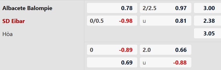 Thông tin tỷ lệ cược Albacete vs Eibar: