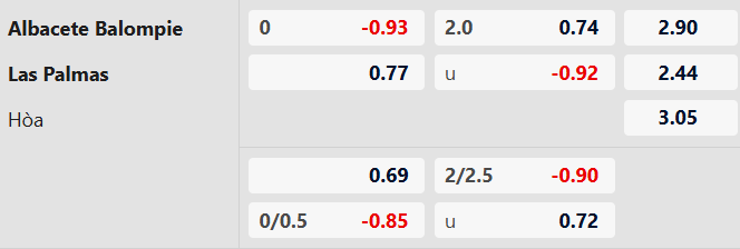 Thông tin tỷ lệ kèo Albacete vs Las Palmas: