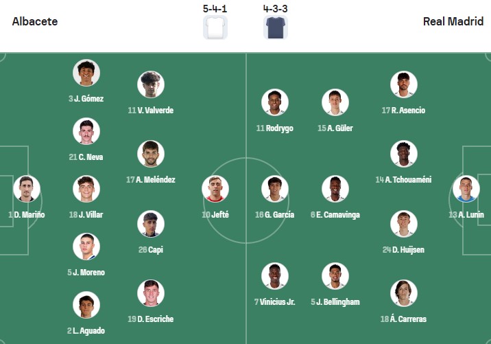 Real Madrid giữ sạch lưới: Lối chơi của Real Madrid trong các trận đấu loại trực tiếp gần đây cho thấy rõ sự chú trọng vào việc kiểm soát trận đấu một khi họ đã dẫn trước, trong khi các bàn thắng của Albacete ở Cúp Nhà vua chủ yếu đến từ những đối thủ không quá mạnh và có nhiều khoảng trống hơn so với những gì họ có thể tìm thấy ở trận đấu khó khăn với Los Blancos.