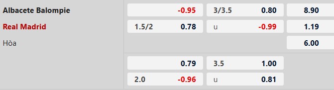 Thông tin tỷ lệ kèo bóng đá Albacete vs Real Madrid: