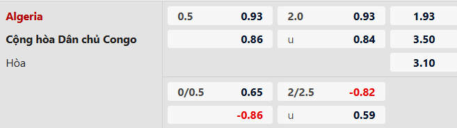 Thông tin tỷ lệ bóng đá Algeria vs CH Congo: