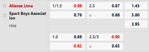 Thông tin tỷ lệ kèo Alianza Lima vs Sport Boys: