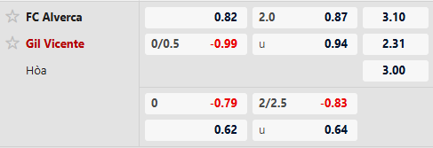 Thông tin tỷ lệ bóng đá Alverca vs Gil Vicente: