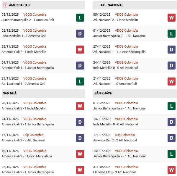 2/3 trận đối đầu gần nhất giữa America de Cali và Atletico Nacional đều có ít nhất 4 bàn thắng. 4/5 trận trên sân nhà vừa qua của America de Cali có ít nhất 3 bàn thắng. Mặt khác, 8/11 trận gần đây của Atletico Nacional có 3 bàn thắng trở lên. 8/11 trận sân khách gần nhất của Atletico Nacional cũng có ít nhất 3 lần lưới rung.