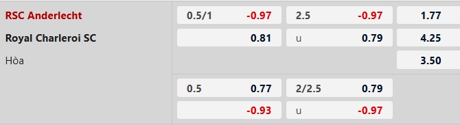 Thông tin tỷ lệ kèo Anderlecht vs Charleroi: