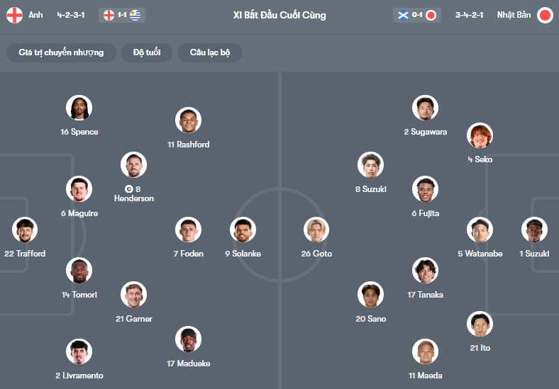Đội hình dự kiến Anh vs Nhật Bản: