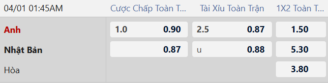 Thông tin tỷ lệ kèo bóng đá Anh vs Nhật Bản: