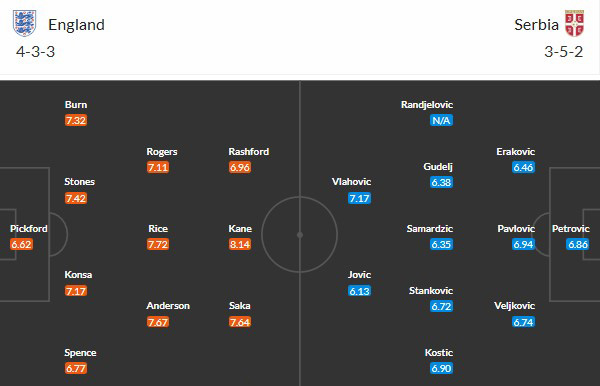 Thông tin tỷ lệ kèo bóng đá Anh vs Serbia: