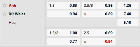 Thông tin tỷ lệ kèo bóng đá Anh vs Wales: