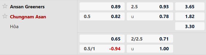 Hiển nhiên Chungnam Ansan đang được đánh giá cao hơn ở trận này với tỷ lệ kèo 1/2 bàn. Ansan Greeners đã thua trong cả 2 lần đối đầu với Chungnam Asan ở mùa giải này. Phong độ của Ansan Greeners vẫn đang tệ kéo dài và họ khó tạo bất ngờ trước đối thủ. Chọn Chungnam Asan.