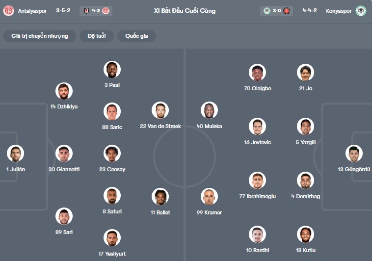 Đội hình dự kiến Antalyaspor vs Konyaspor: