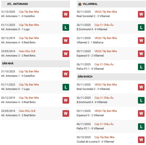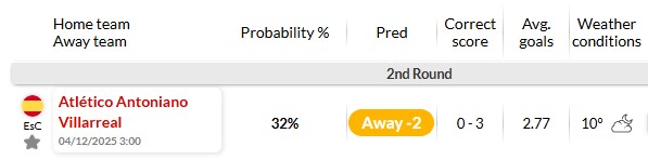 Dự đoán Antoniano vs Villarreal, 03h00 ngày 4/12, vòng 1/8 Cúp Nhà Vua Tây Ban Nha, sân Municipal de Lebrija. Dù Antoniano có phong độ tốt trên sân nhà, nhưng sự hạn chế về chất lượng đội hình sẽ khiến họ khó đứng vững trước áp lực từ Villarreal.