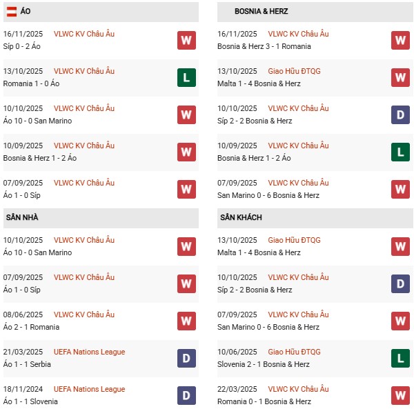- Trên sân nhà, Áo hòa cả 2 trận trước Bosnia.