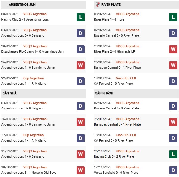 Vòng này, River Plate làm khách của Argentinos Juniors - đội bóng sau mùa 2025 đã đổi từ bảng A sang bảng B giải VĐQG Argentina nên mới lại được đụng độ River Plate. Còn nhớ 3 lần gặp nhau gần nhất giữa đôi bên (năm 2024 và 2023), Argentinos Juniors đều không thua, trong đó 2 thắng lợi diễn ra trên sân nhà.