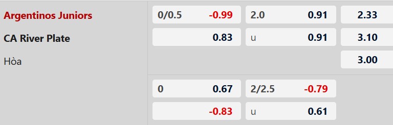 Thông tin tỷ lệ Argentinos vs River Plate: