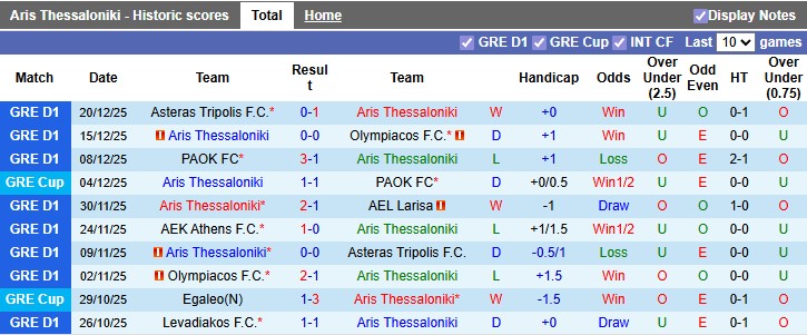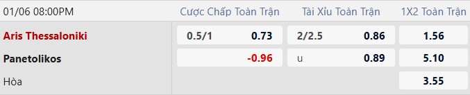 Thông tin tỷ lệ Aris vs Panetolikos: