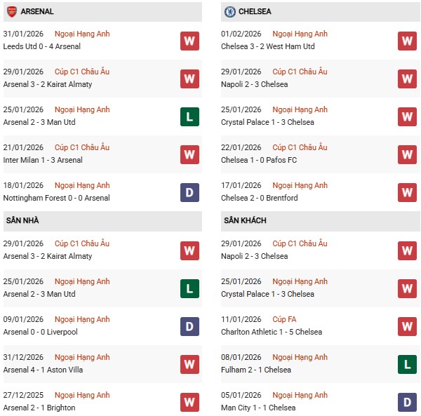 Phong độ gần đây của Arsenal khá thất thường, đặc biệt trên sân nhà. Pháo thủ Bắc London chỉ thắng 1, hòa 1 và thua 1 ở 3 trận gần nhất tại Emirates trên mọi đấu trường. Do đó, Chelsea vẫn còn hy vọng đảo ngược tình thế, nhất là khi The Blues có nhiều điểm tích cực kể từ khi Liam Rosenior hạ cánh xuống sân Stamford Bridge.