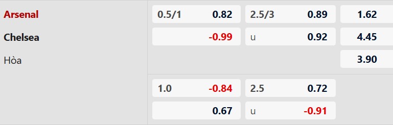 Thông tin tỷ lệ kèo bóng đá Arsenal vs Chelsea: