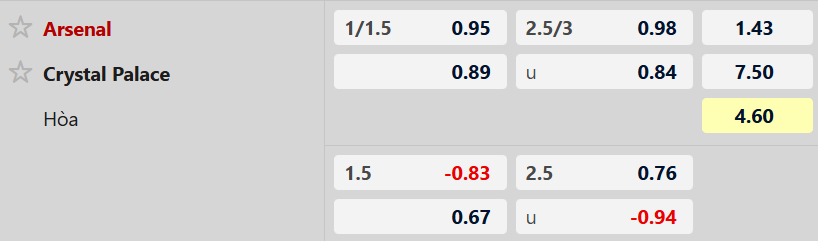 Mức chấp dành cho Pháo thủ ở trận đấu này lên tới 1 1/4, giống hệt với trận lượt về mùa trước tại Emirates. Pháo thủ từ đầu mùa cũng chỉ thắng kèo 4 trận, như Crystal Palace. Họ không đáng tin với kèo chấp này.