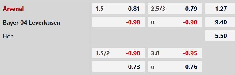 Soi kèo châu Á Arsenal vs Leverkusen: