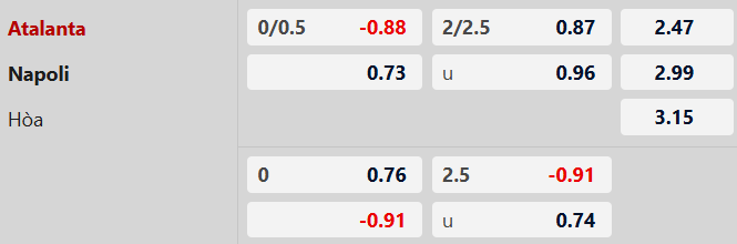 Soi kèo châu Á Atalanta vs Napoli: