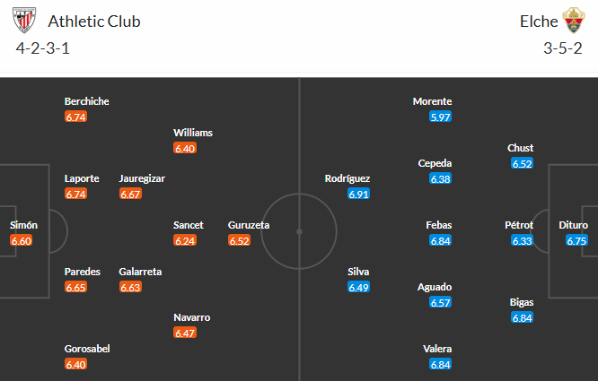 Đội hình dự kiến Athletic Bilbao vs Elche: