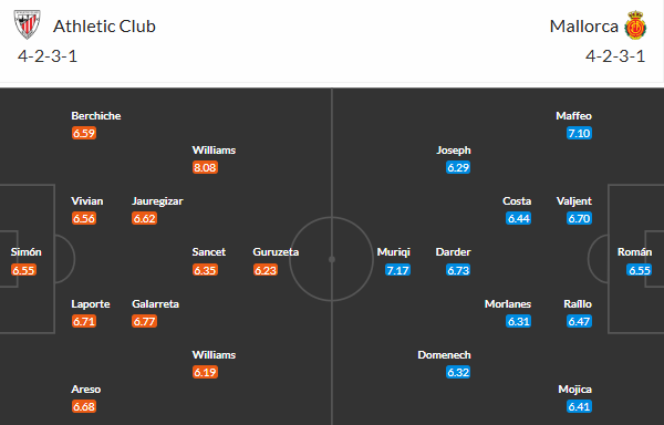 Đội hình dự kiến Athletic Bilbao vs Mallorca: