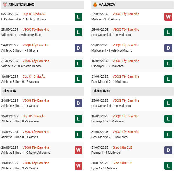 Mallorca bước vào trận đấu này với tâm lý cần điểm để tránh bị tụt lại trong cuộc đua trụ hạng hoặc ít nhất là không bị kéo vào nhóm cuối bảng. Phong độ của họ trong mùa giải 2025/26 rất thiếu ổn định, thua 4, hoà 2 và thắng 1. Theo thống kê, Mallorca chỉ ghi trung bình 0.86 bàn/trận và để thủng lưới khoảng 1.57 bàn/trận. Điều này cho thấy hàng phòng ngự của họ hay bị dồn ép, đặc biệt khi phải đối đầu các đội có tốc độ cao và khả năng triển khai bóng tốt như Bilbao.